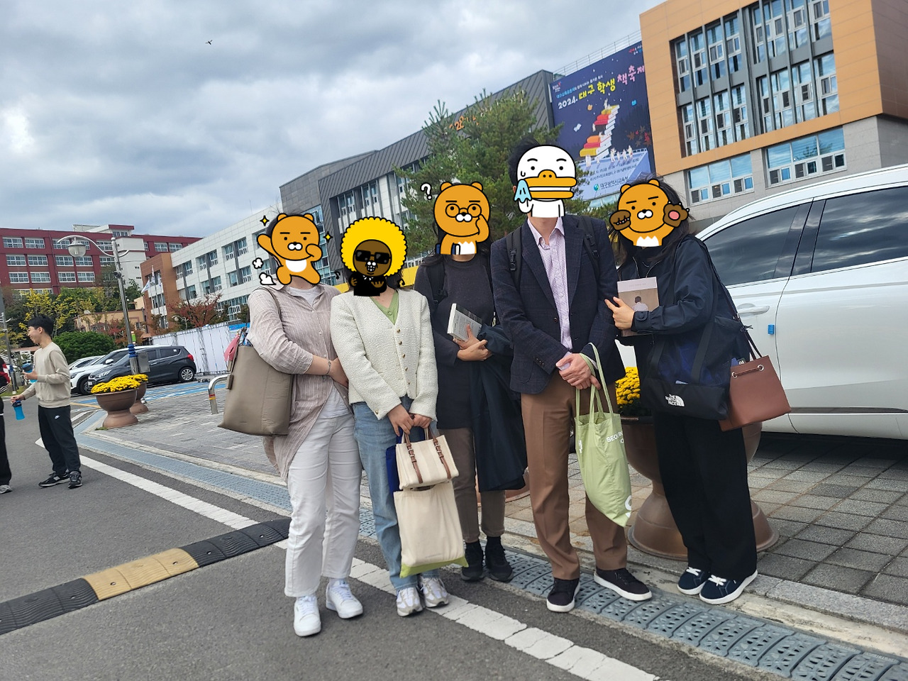 이 서명을 받은 책이 얼마나 소중한지 가방에 넣지 못하고 손에 들고 동료 선생님들과 식사를 하러 갔다. 돌아오는 길에 교수님을 다시 만났다. 미처 사인을 받지 못했던 같은 독서모임의 선생님이 교수님께 싸인을 받고 있었다. 그래서 다 같이 인증샷을 찍을 수 있었다. 늘 사진을 담당해 오신 선생님과도 같이 찍고 싶어 지나가던 중학생에게 사진을 부탁했다. 교수님은 바쁘실 텐데 여러모로 이해하고 배려해 주셨다. 오늘은 오래 기억되는 날이 될 것 같다. 저 오늘부터 교수님 팬입니다. 감사합니다. 건강하세요
