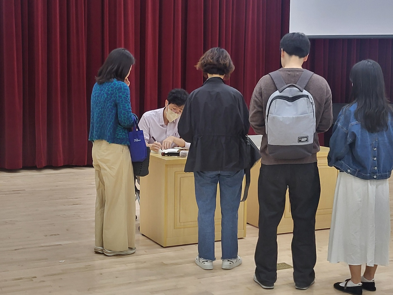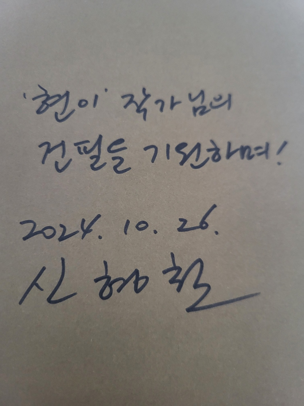 풍성한 강의를 준비해 오셔서 강의가 늦어지자 사전질문 응답과 책서명 중 하나를 선택해야 했다. 하지만 교수님은 흔쾌히 점심시간을 할애해서 사전질문에도 정성껏 답변해 주셨고 원하는 모든 분들께 책서명을 해 주셨다. 수줍게 브런치 작가라고 말씀드렸더니 <현이> 작가 메모를 하시고는 읽어보겠다고 말씀하셨다.