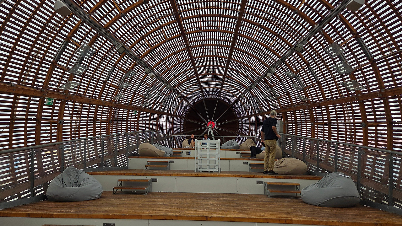 들어가 보면 아늑한 공간이 나오고, 관람객들이 쉴 수 있도록 빈 백 체어들을 놓았다.