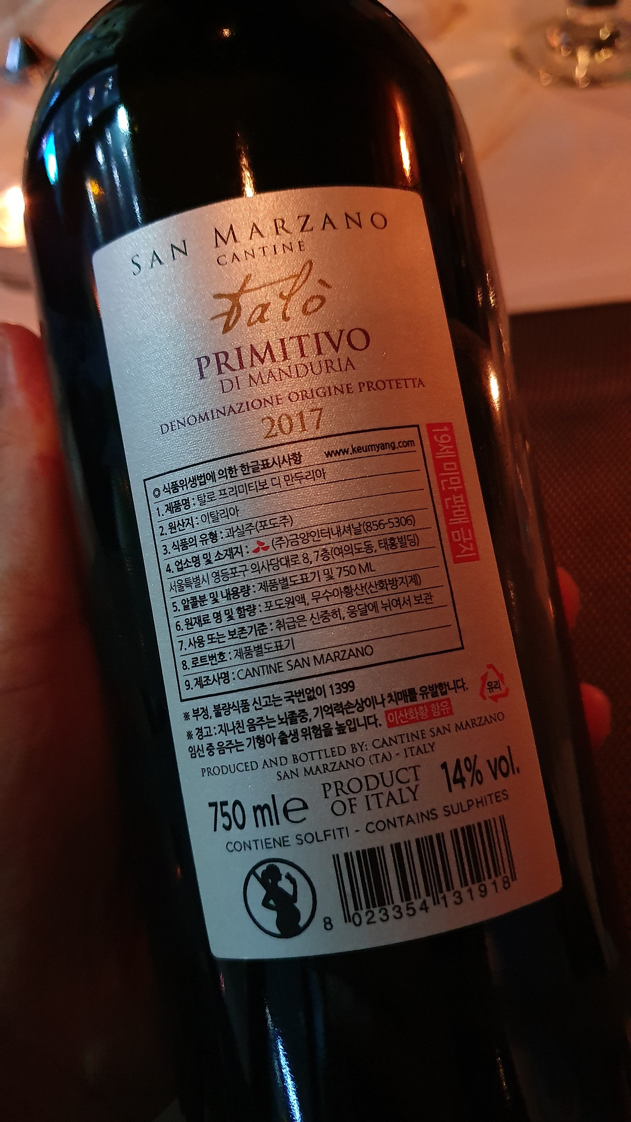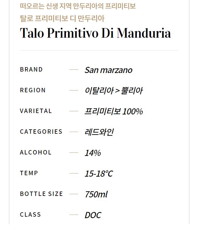 탈로 프리미티보 디 만두리아의 프리미엄 와인