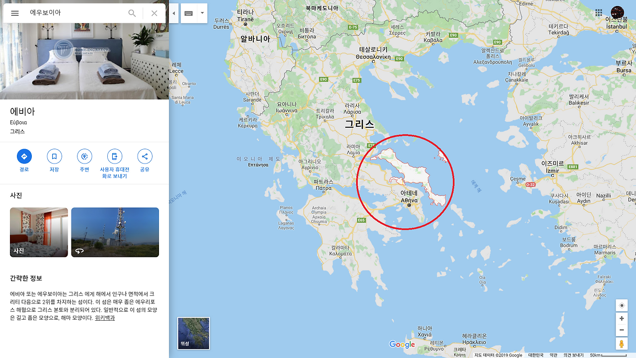 에우보이아(고대 그리스어: Εὔβοια)는 현재 에비아(현대 그리스어: Εύβοια)로, 그리스에게 해에서 인구나 면적에서 2위를 차지하는 섬이다. 이 섬은 매우 좁은 에우리포스 해협으로 그리스 본토와 분리돼 있다.