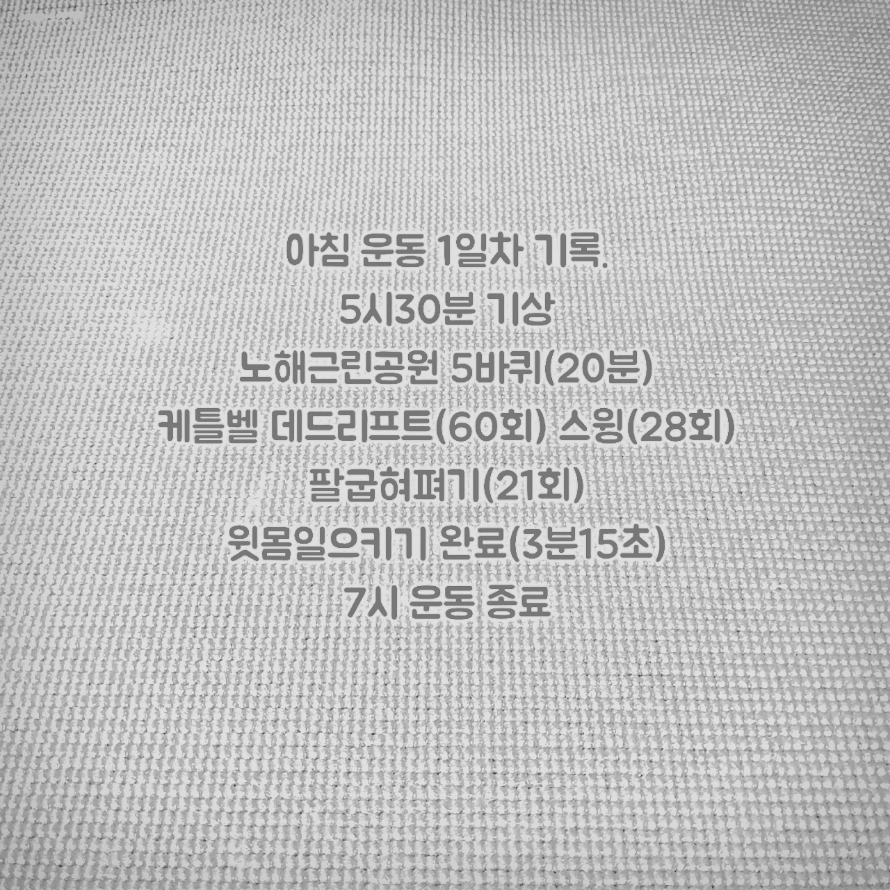 물론 게으름쟁이인 나를 단숨에 물리치기는 힘들어 2분 동안 잠시 누워있다가 30분에 '나와의 약속이니 일어나야 한다'며 뿌리치고 일어났다.
