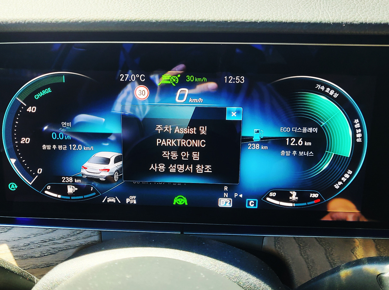 집으로 돌아가기 위해 시동을 켜니... 이클이 요넘.... 주차 도움 센서 쪽 문제가 있다는 에러를 내게 보냈다.
