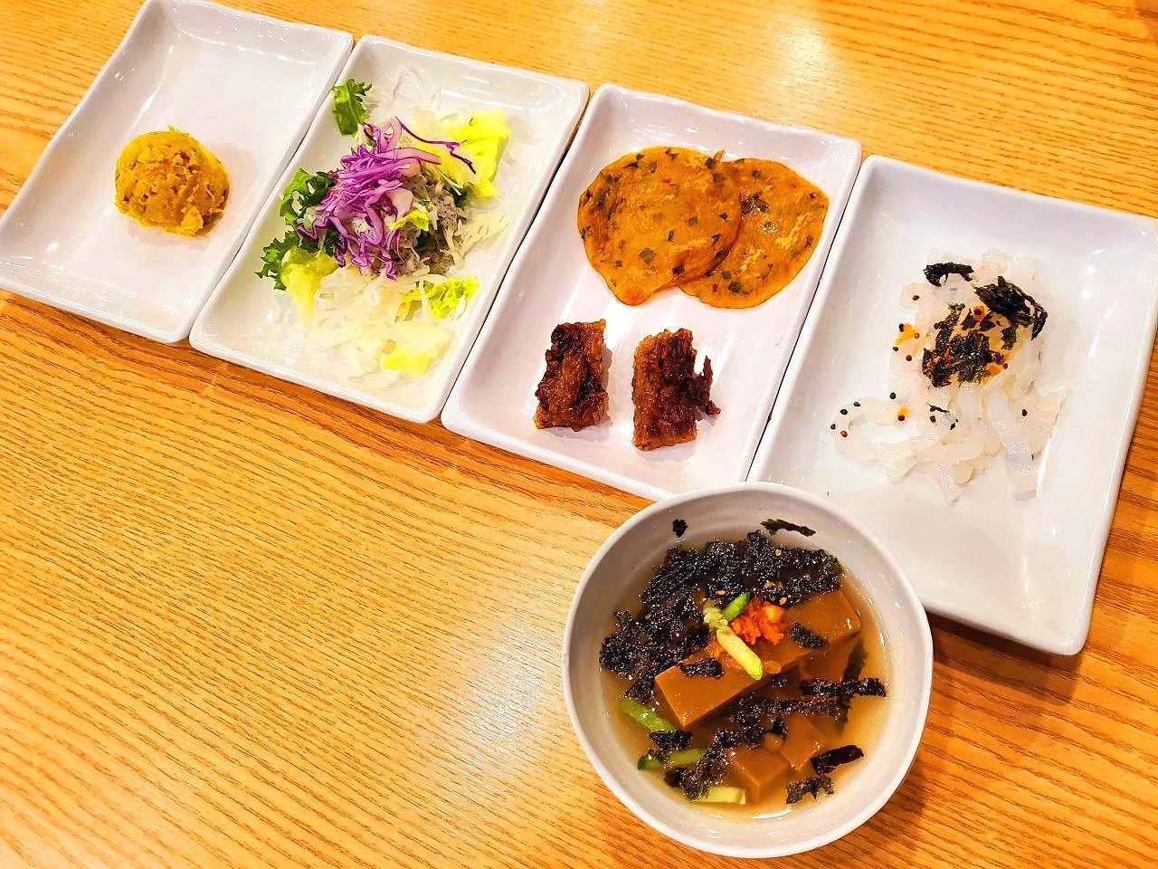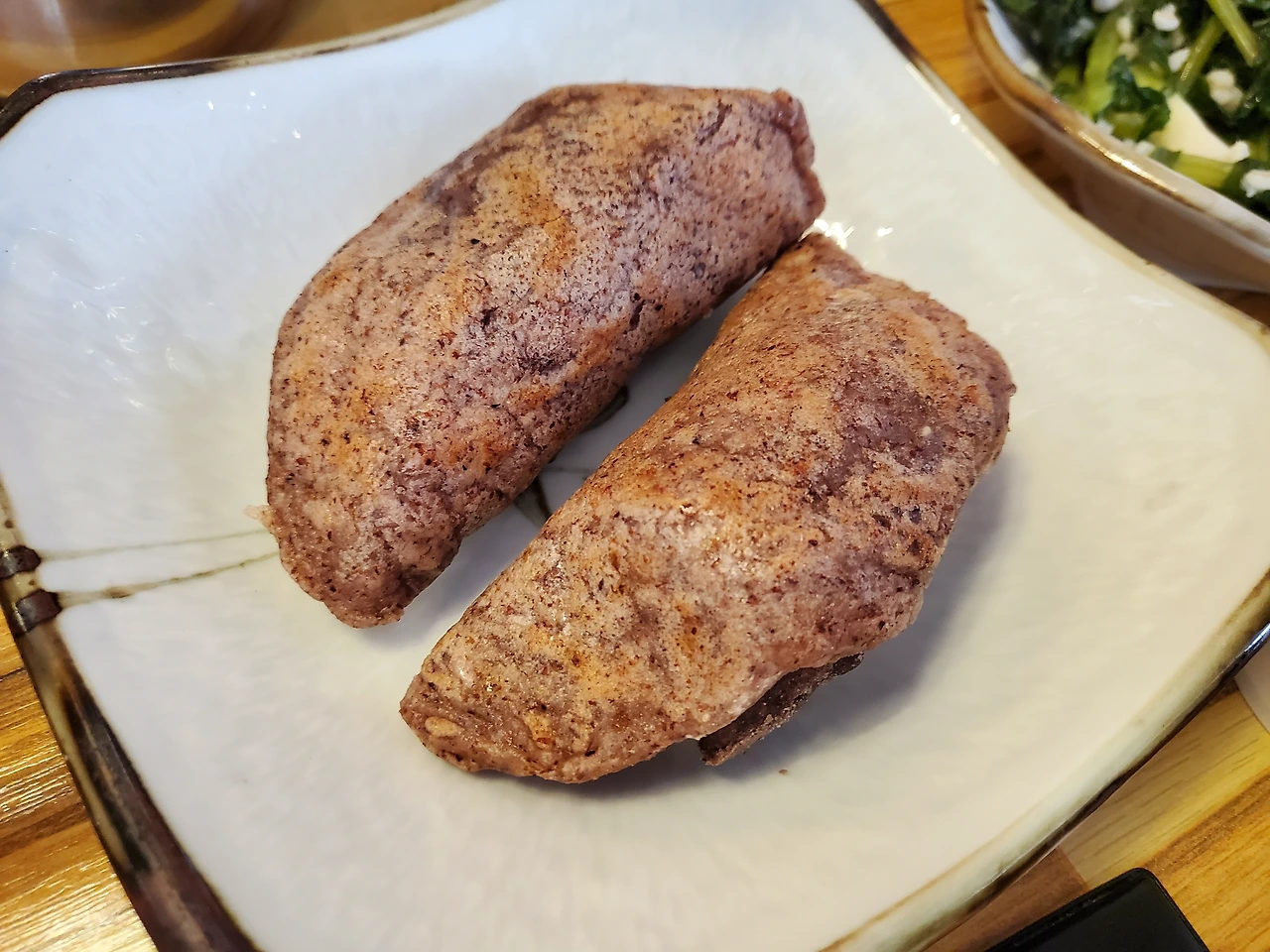 - 도토리묵으로 만들어서 식감이 색다름. 양념에 무친 배(과일)지만 배의 과즙이 무척 달콤하다.