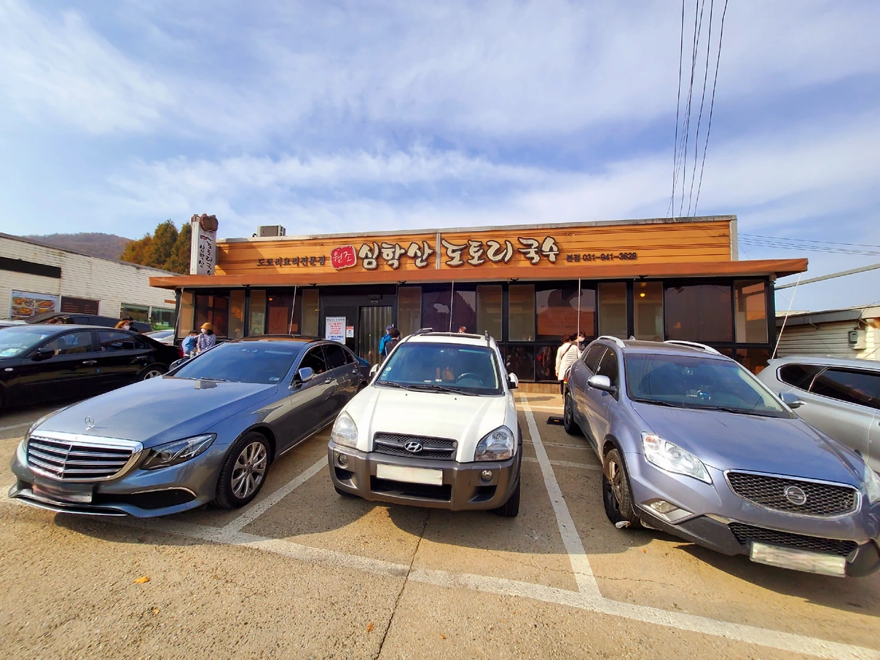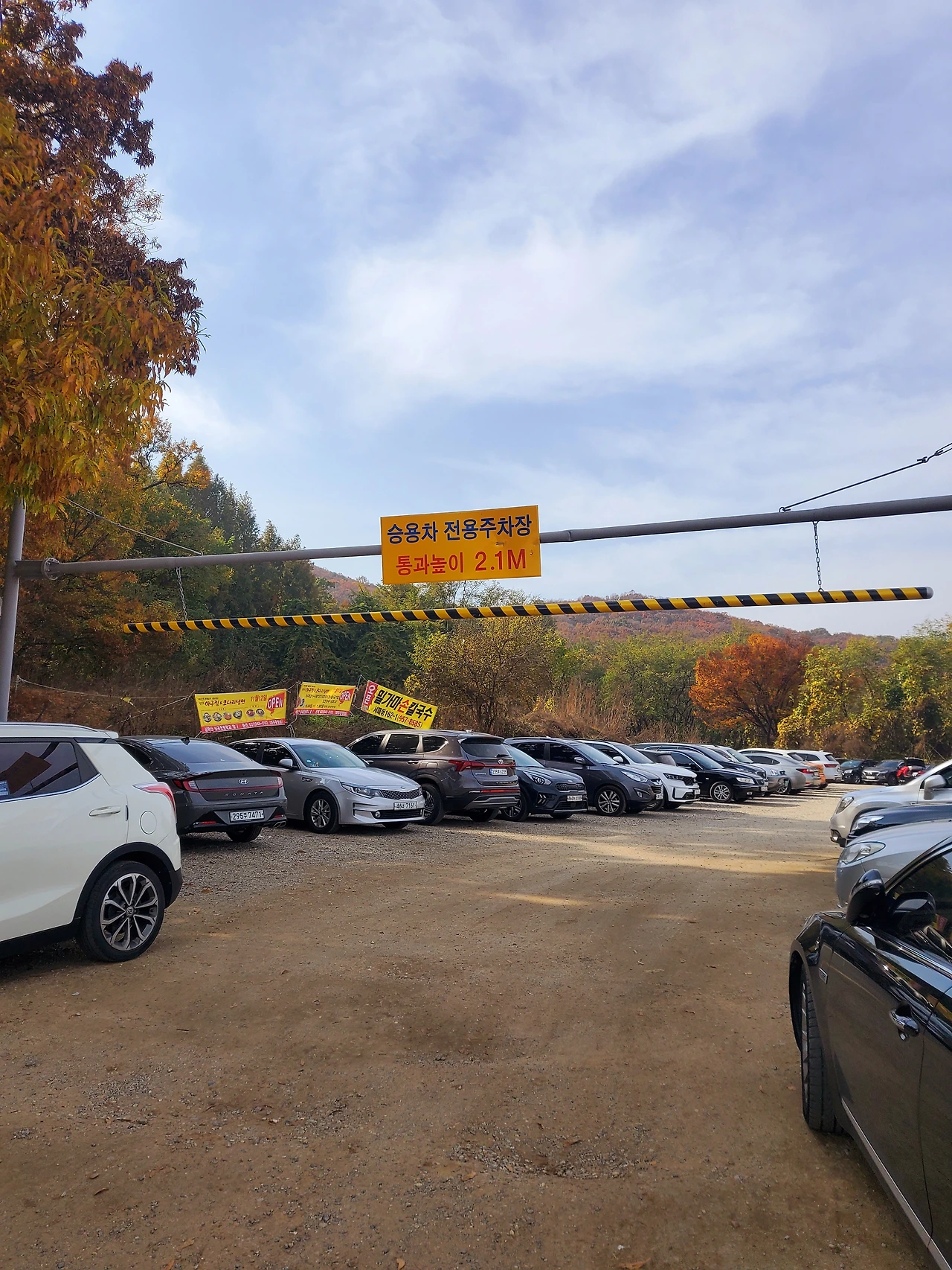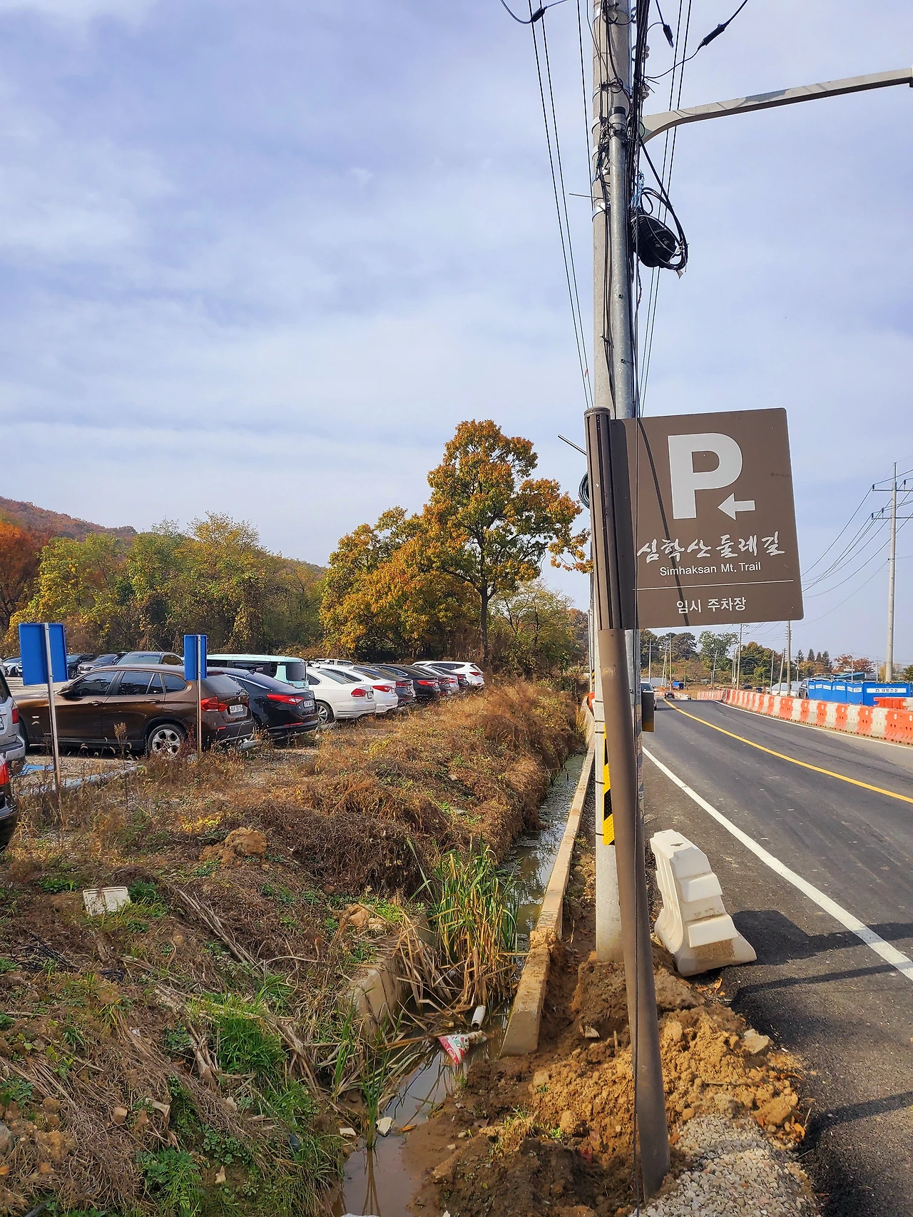 이곳은 정말 인기가 많았다. 식당 앞에 그리고 식당을 둘러싸고 놓여있는 주차선에는 도저히 차를 댈 수가 없었다. 그래서 찾은 곳은 인근 심학산 둘레길을 찾아온 관광객들을 위해 마련된 임시 주차장이다.