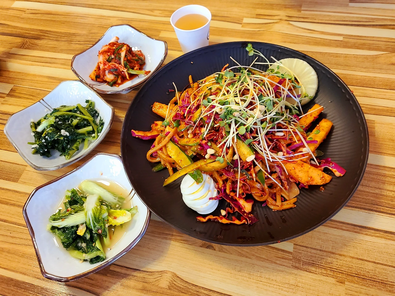 - 쟁반국수의 양념은 자극적이지 않아 좋다. 신선한 야채도 아삭아삭해 식감도 좋고 전반적으로 건강한 맛이다.