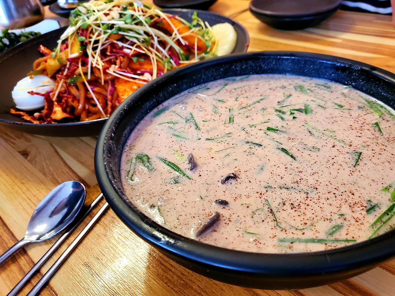 - 들깨가 듬뿍 들어가 있어 걸쭉하고 고소해서 국물도 마시면 건강해질 것 같은 느낌이다.