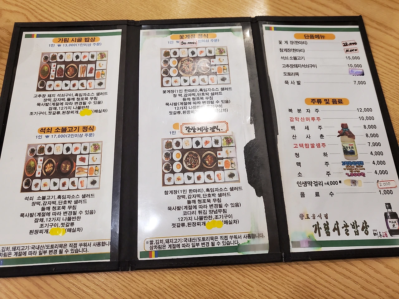 메뉴판은 예나 지금이나 변함없었다. 우린 석쇠 소불고기 정식 2인분을 주문했다.