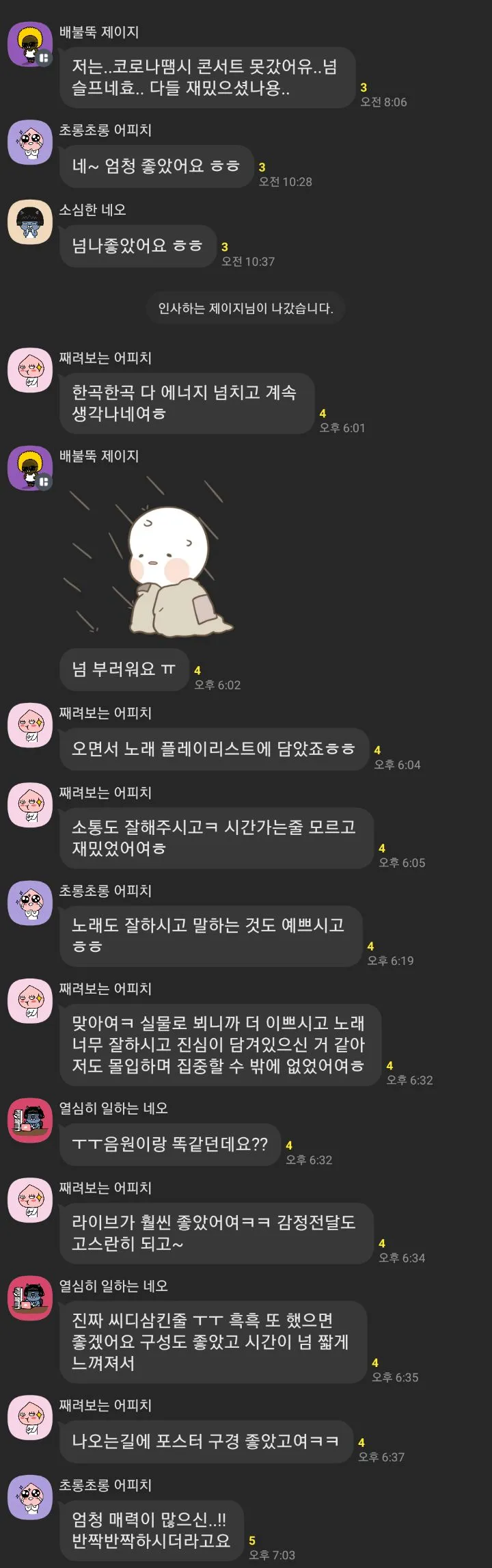 그제였다. 우지원 님의 Not a Just Dream 콘서트! 3시 공연과 7시 공연 모두 성황리에 마쳤다. 팬 카톡방에는 많은 분들이 찾아왔고 이번 공연에 대한 후기도 이어졌다. 보는 내가 다 훈훈할 정도였다.
