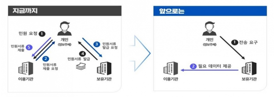 ㅇ 마이데이터는 개인(정보주체)의 정보전송요구권을 위임받은 마이데이터 서비스 제공자가 쉽게 한 번에 개인 금융 정보를 통합 조회할 수 있는 서비스임. 마이데이터 사업은 정보주체자인 고객이 요청하는 경우 그 정보를 API 형태로 제공해야 하는 것임