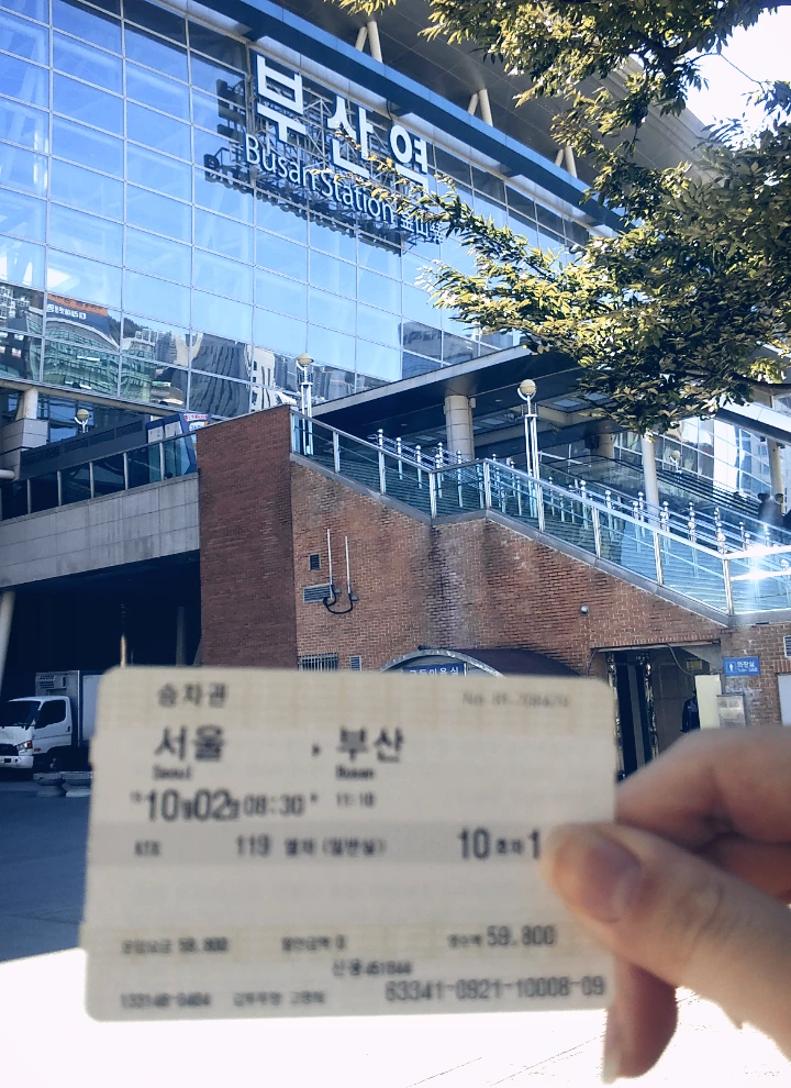 그렇게 미안함을 느끼고 10월 첫째 주 금요일 오전 7시 집을 나섰다. 첫 번째 목적지는 서울역 KTX 타는 곳. 8시 30분에 서울에서 출발하는 부산행 KTX 열차에 몸을 실었다.