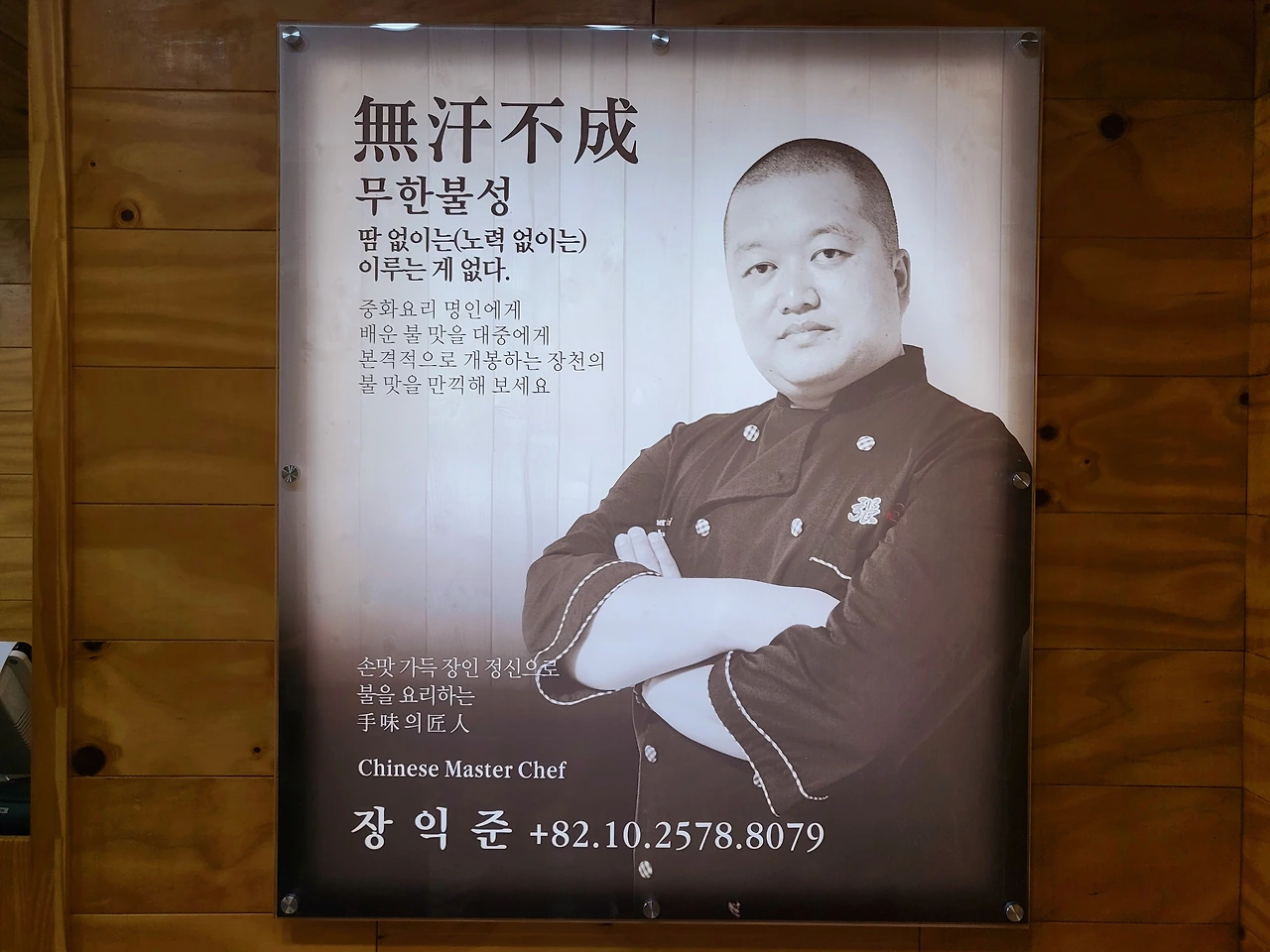 입구에 들어서면 나를 반기는 사장님의 영혼(?)이 담긴 커다란 액자다. 흔히 여기 이곳은 불 맛이 특징이라고 했다. 그리고 이곳에서 유명한 것은 차돌박이불짬뽕인데 매운 불맛이라고 했다.