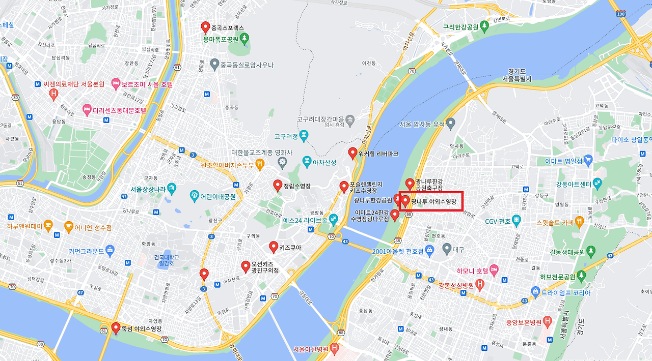 뚝섬한강공원에서는 멀지 않은 곳에 위치해 있어 뚝섬한강공원수영장에서 물놀이를 했다면 더 가까울 거리지만, 광나루 한강공원 수영장에서도 사실 그렇게 먼 거리는 아니었다.