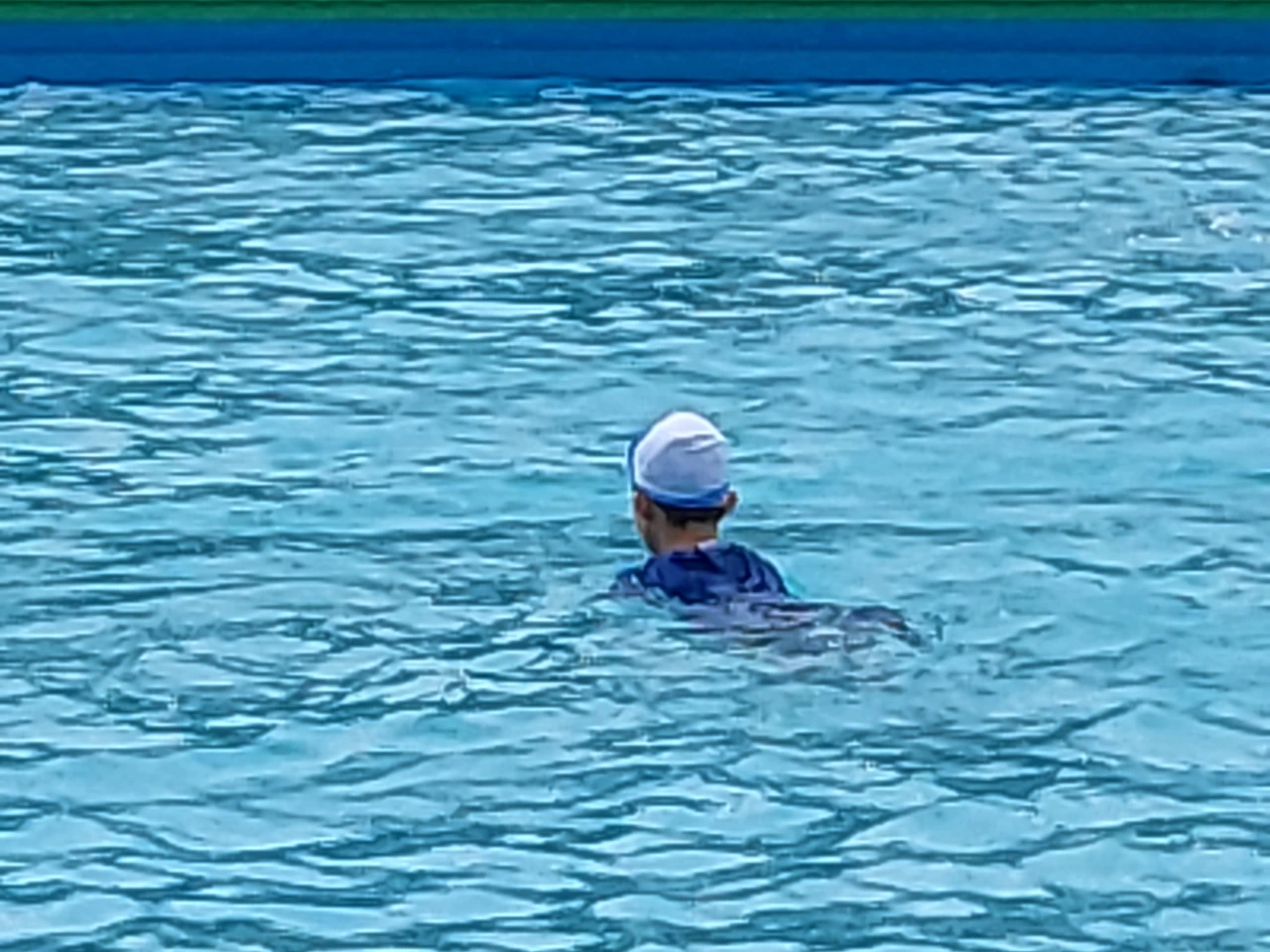 그렇게 들어가니 수영장엔 넉넉 잡아도 20 가족이 안 되는 인원이 있었다. 큰 야외 수영장에 전체 인원이 어림잡아 50명도 안 되는 셈이었다.
