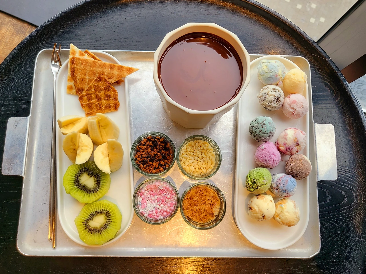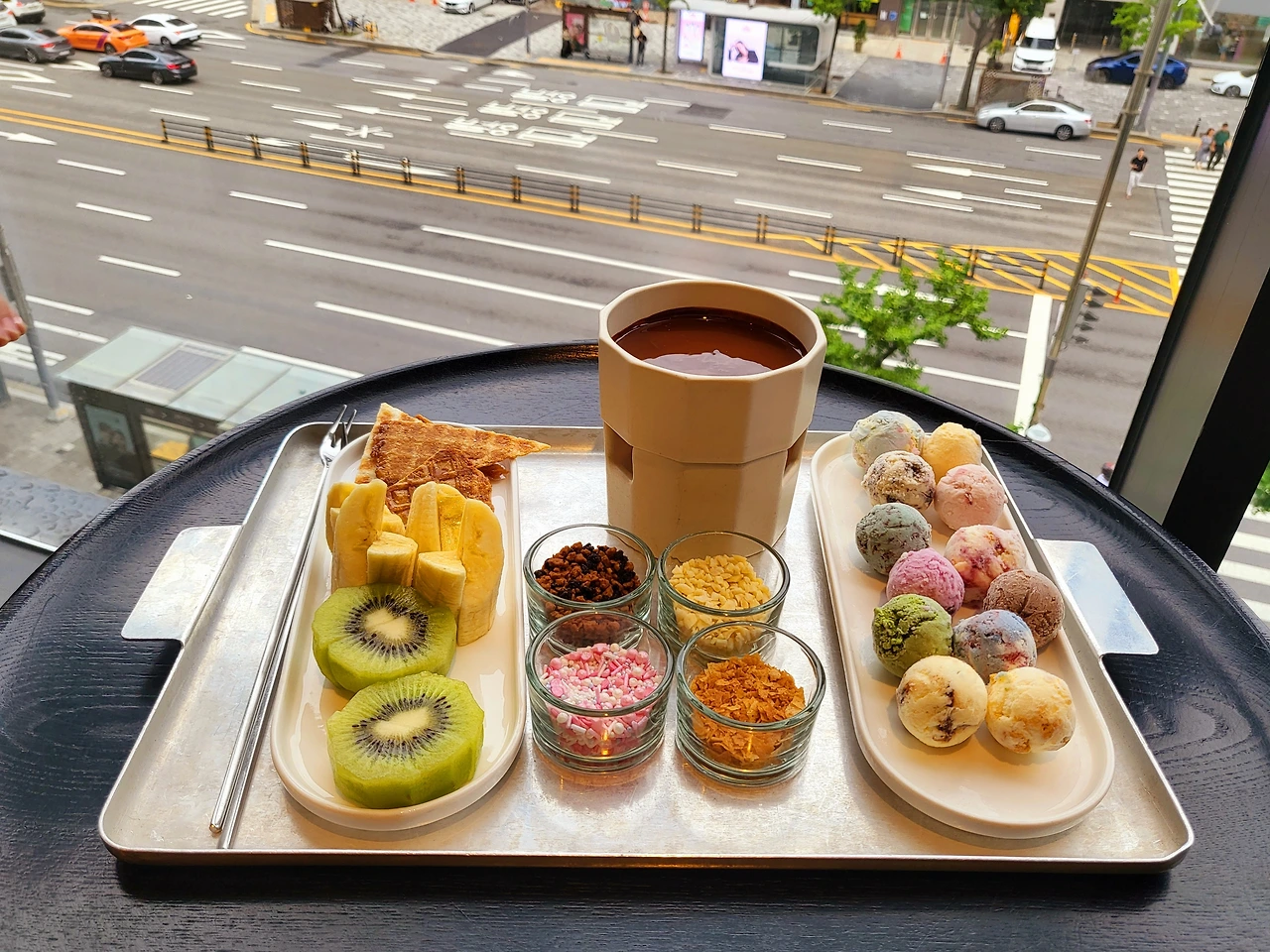 아이스크림 퐁듀를 먹으며 도로뷰를 감상하고
