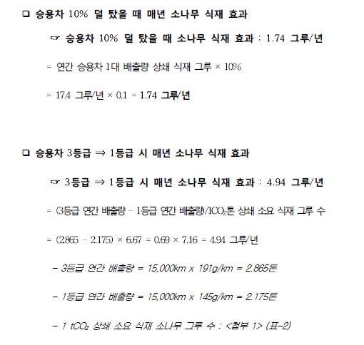 ㅇ 승용차 10% 덜 탔을 때 매년 소나무 식재 효과