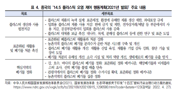 중국은 2017년 폐기물 수입을 금지한 이후 국내 재활용 시장을 활성화하고 일회용품 사용을 규제하는 일련의 조치를 마련했며, 아세안은 해양폐기물 문제에 관한 역내 공동의 대응을 강조하고 있다.