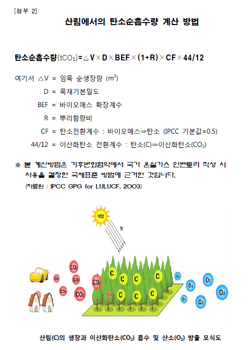 ㅇ 축구장 크기 소나무 30년생 숲 승용차 3대 배출량 흡수