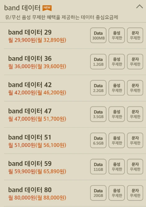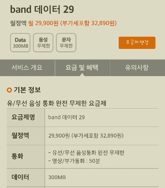 밴드29 요금제부터 써야 한다는 생각은 하지 못했다. LTE35 요금제에 대한 편견 때문이었을 지도 모르겠다. 밴드요금제는 밴드29라 하더라도 통화료가 무제한이라는 것을 간과한 내가 한심스러웠다.