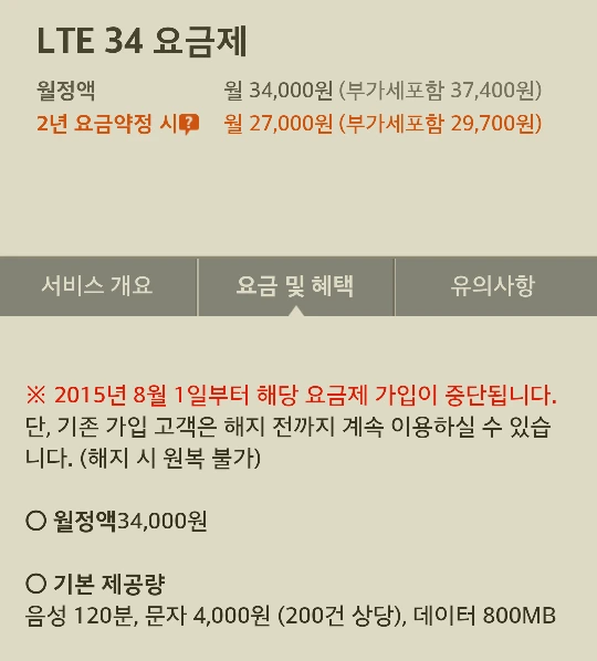 다시 한 달이 됐다. 7월 29일이었다. 우연히 블로그 글을 하나 봤다. 8월 1일자로 LTE34요금제가 종료된다는 글이었다. "LTE34요금제가 제공하는 데이터가 800메가이니 종료되기 전에 가입하세요"란 문구가 내 마음을 사로잡았다.