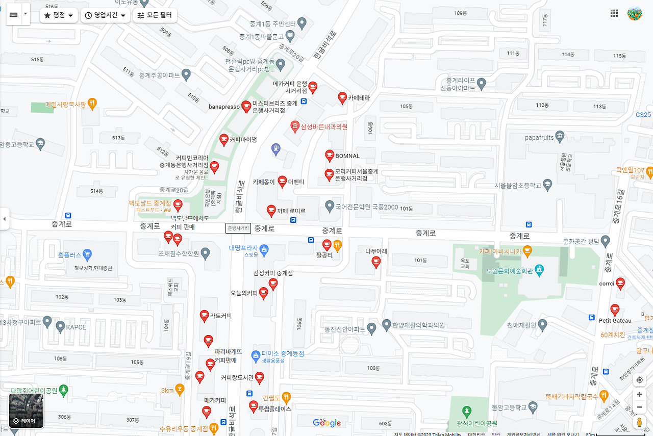 실제로는 내가 표시하지 않고 빠뜨린 커피숍이 있을 수도 있어 혹여라도 빠졌다면 미리 양해를 구한다.