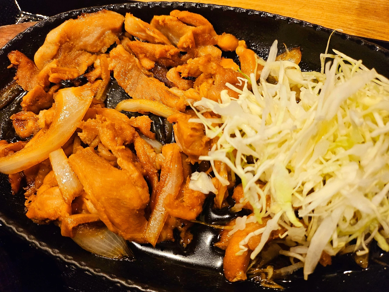 아들은 고기에 계란이 올라간 정식을 시켰고, 아내는 고등어 간장조림 정식을, 나는 간장으로 양념한 고기반찬이 있는 정식을 시켰다. 그리고 생맥주도 한 잔 더했다.