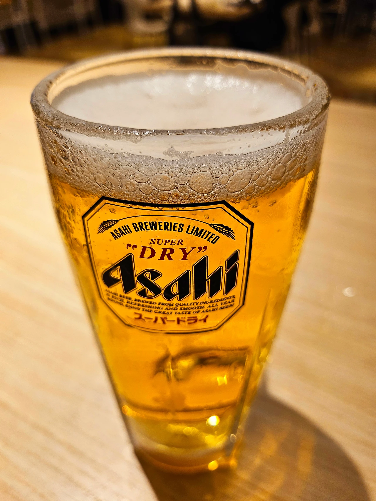 일본 여행 와서 난 1식 1 아사히를 마시고 있다