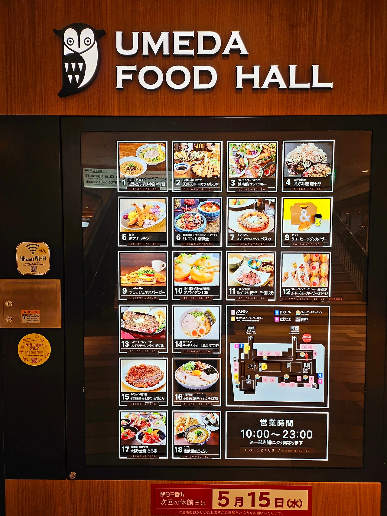 아들의 만족스러운 쇼핑을 마치고 우리는 우메다 푸드홀로 늦은 저녁을 먹으러 왔다.