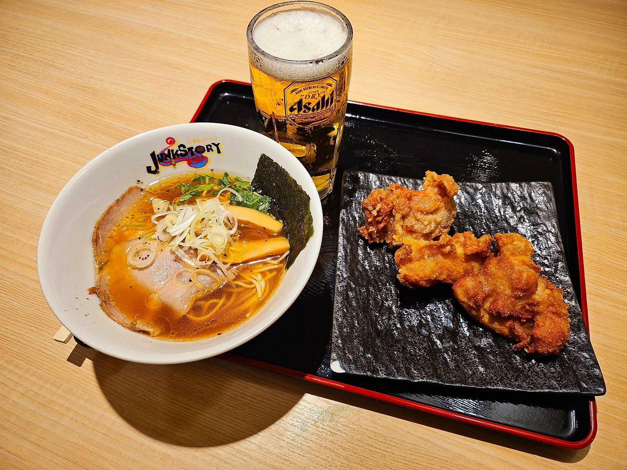 라멘이 먹고 싶다던 아들은 고기덮밥을 시켰고, 아내는 김치찌개를 주문했다. 나는 일본에 왔으니 일본 스러운 걸 먹어야 겠다는 생각이 들어 라멘과 치킨 그리고 아사히 생맥주를 주문했다.