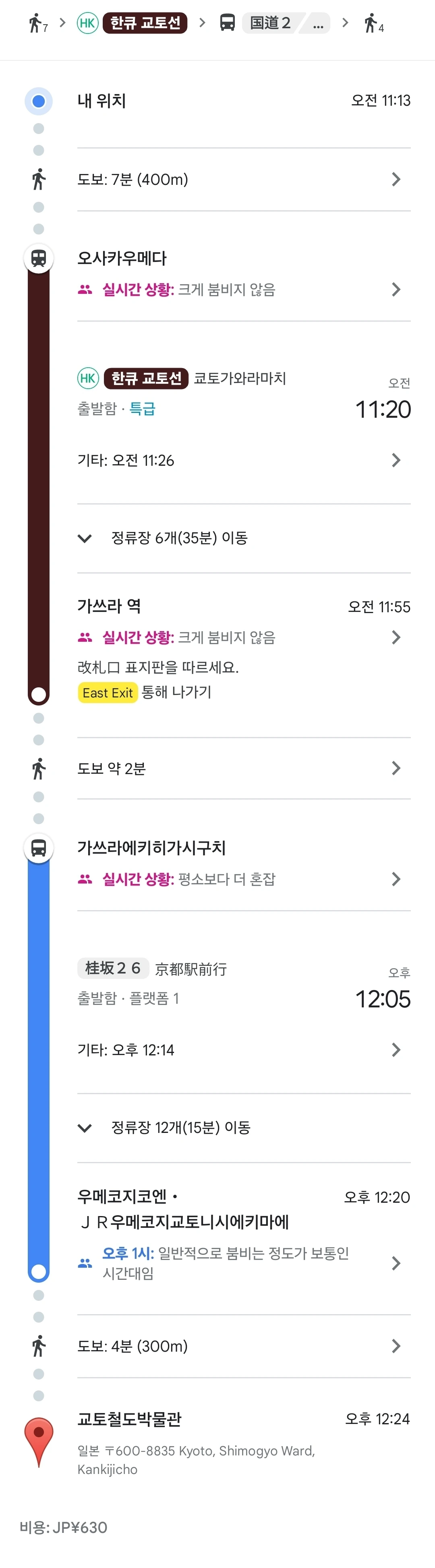 배를 채웠으니, 이제 교토시로 이동해야 한다.