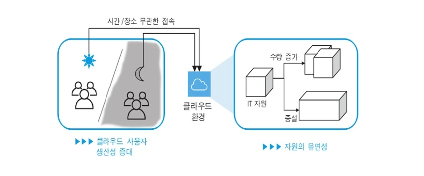 필요한 만큼만 이용할 수 있고, 사용 규모를 필요에 따라 늘렸다가 줄였다 할 수도 있어 탄력적인 운영도 가능해 자원도 유연하게 사용할 수 있다.