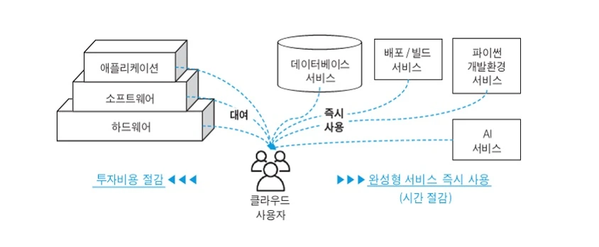 하지만 클라우드 서비스는 개발 환경 구성에 필요한 IT자원인 하드웨어, 소프트웨어, 애플리케이션 등을 다른 사용자들과 공유하고 소유가 아닌 임대 형식으로 사용할 수 있어 하드웨어, 소프트웨어의 구매·유지 및 인건비, 유지 보수 등의 비용이 절감된다.