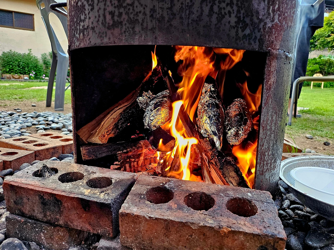 고구마도 쿠킹포일에 싸서 넣었다. 물론 스킬이 부족했다. 고구마는 잔불에 했어야 했는데 처음부터 넣어서 숯으로 변해서 먹을 수가 없었다. 분위기만 냈다.