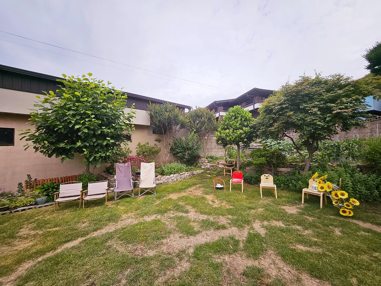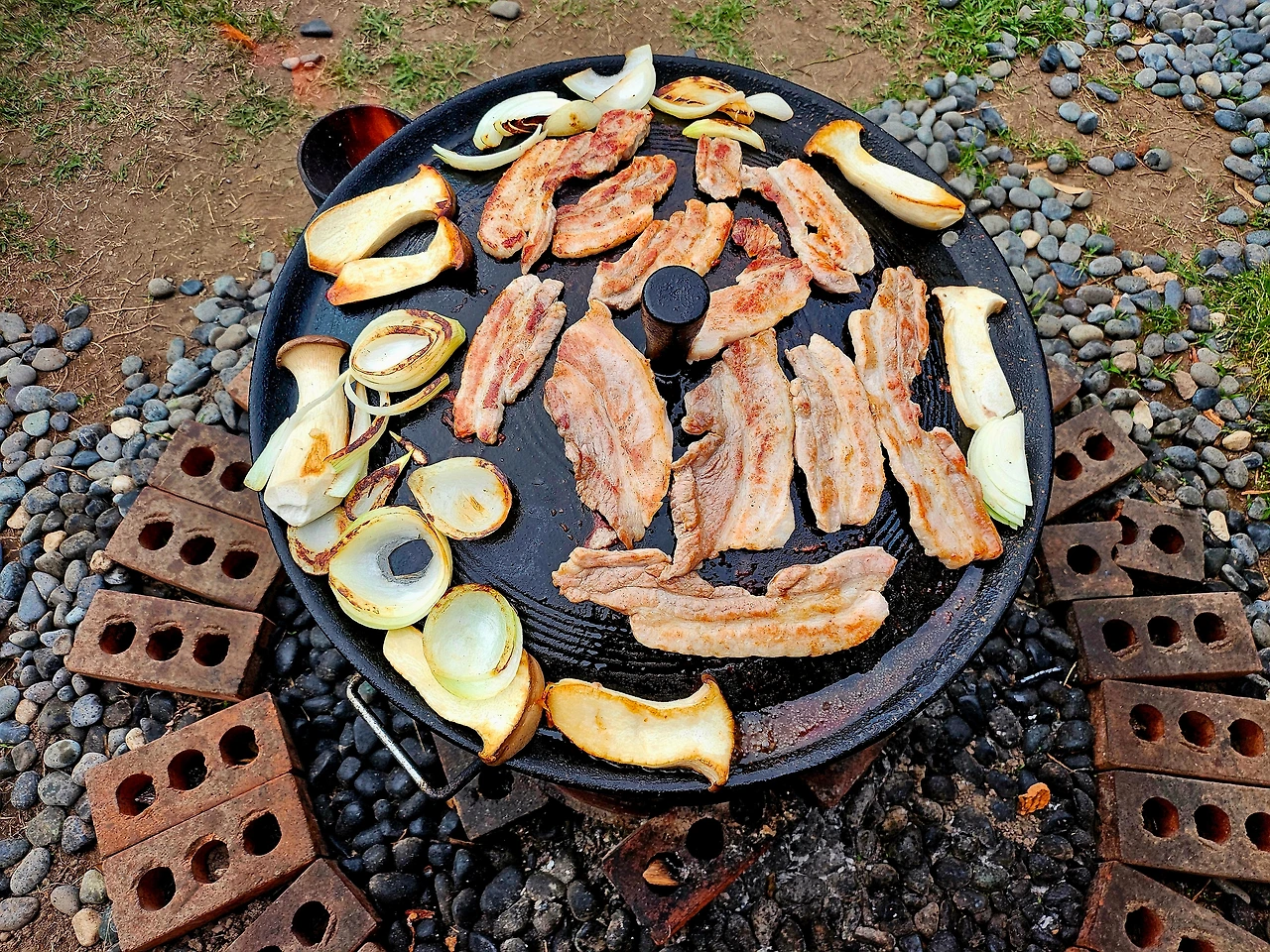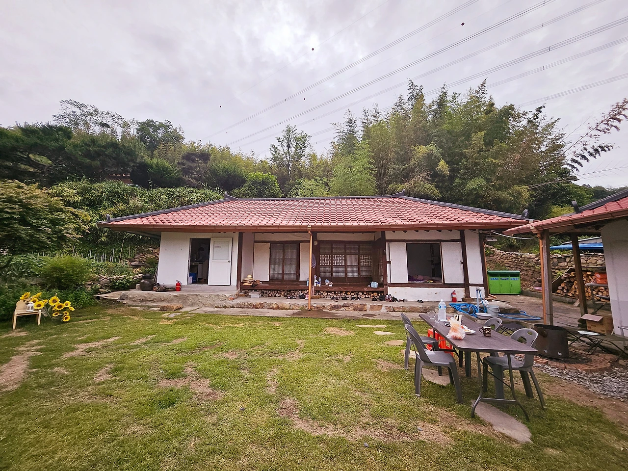 양산시에 있는 정원이 있는 한옥집이다. 집주인께서 만들어 놓으신 화로에 장작을 넣고 불을 지피고, 숙소에 마련된 솥뚜껑에 지방으로 기름을 두르고 삼겹살과 양파, 버섯을 올려 구워 먹으면 분위기가 정말 최고다.