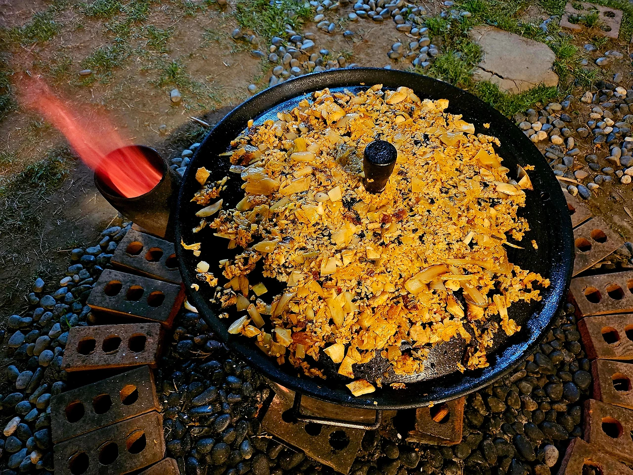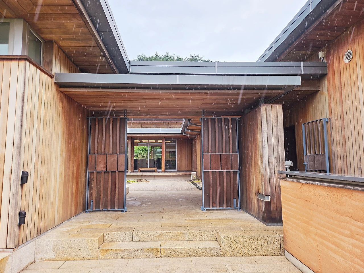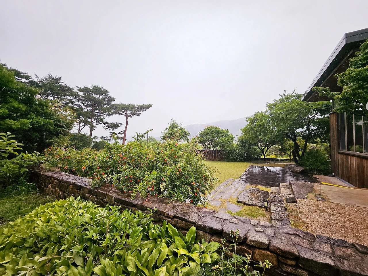 양산시에 있는 정원이 있는 한옥집이다. 집주인께서 만들어 놓으신 화로에 장작을 넣고 불을 지피고, 숙소에 마련된 솥뚜껑에 지방으로 기름을 두르고 삼겹살과 양파, 버섯을 올려 구워 먹으면 분위기가 정말 최고다.