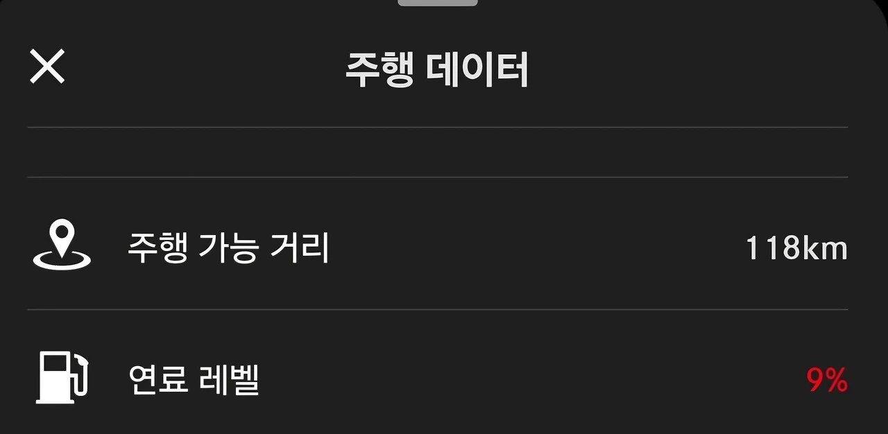 ⓒ광화문덕중요한 것은 가솔린 차량으로 한 번 주유하고도 9%의 연료가 남았다. 118km를 더 갈 수 있다고 나와있다.