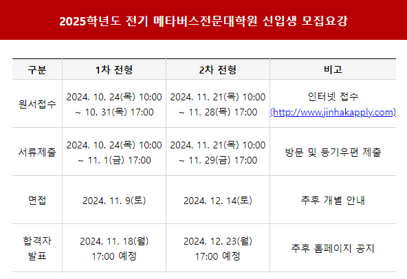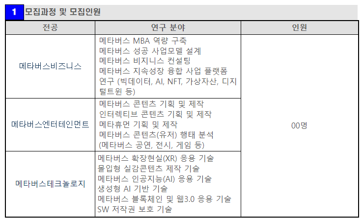 2025학년도 전기 메타버스전문대학원 석/박사 신입생 모집