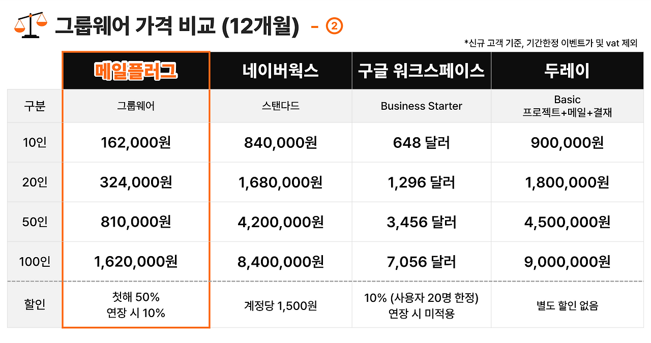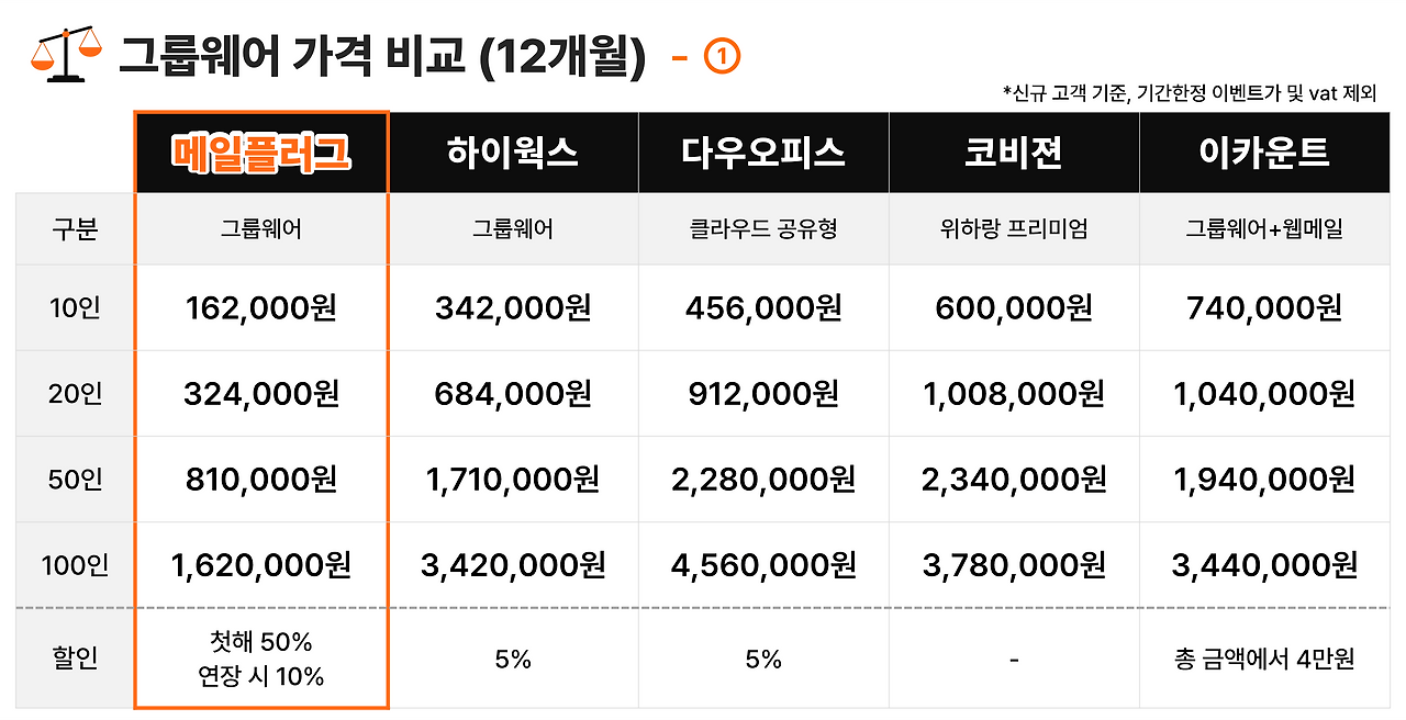 이렇게 비교해 보니, 확실히 네이버웍스를 계속 사용하기엔 부담이 있었다. 더 저렴한 대안이 있는지 살펴보던 중, 우연히 한 게시물을 보게 됐다.