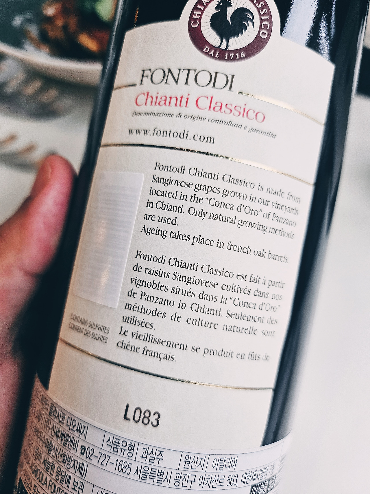 이탈리아 FONTODI 끼안티 클라시코가 담긴 잔에