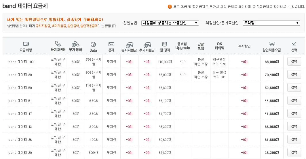 이 경우라면 무조건 20% 선택요금할인을 받으면 된다.
