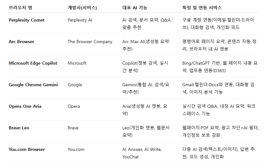 AI 웹브라우저들은 각기 뚜렷한 색깔을 드러낸다.
