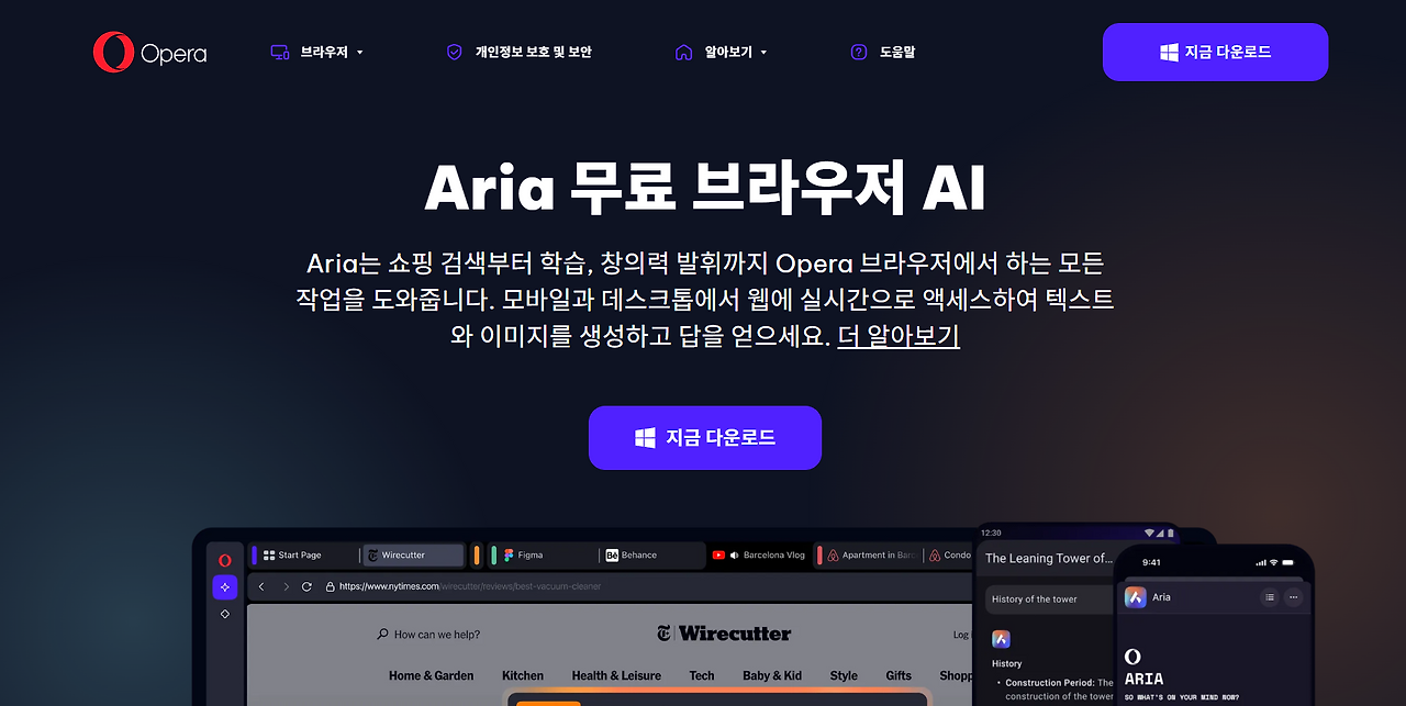 가볍고 빠르게 쓰고 싶다면 Opera Aria,
