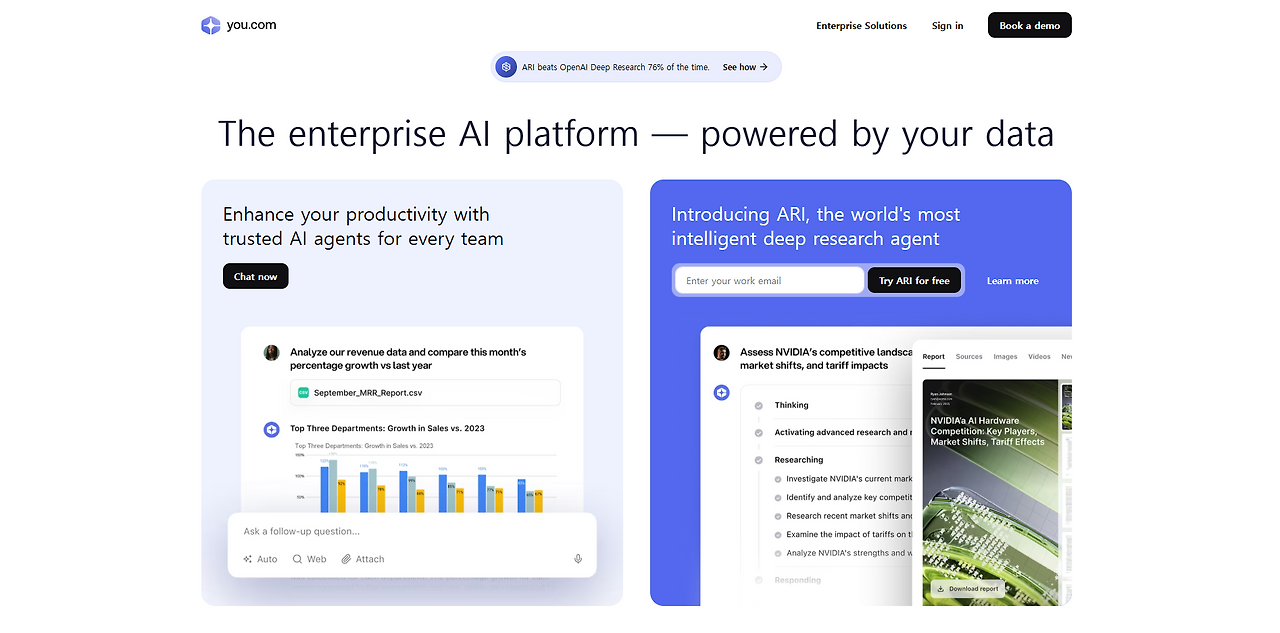 멀티검색·코드까지 신경 쓴다면 You.com.
