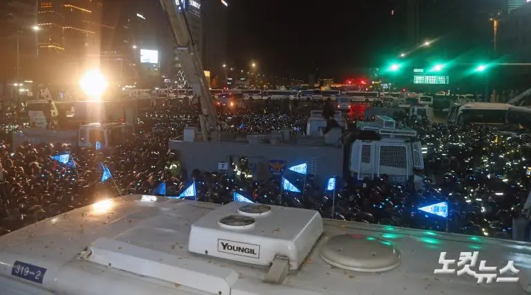 사전 집회는 비교적 차분하게 진행됐다. 그리고 예상했던 대로 오후 5시가 넘어서면서 시위대는 광화문 광장으로 진입을 시도했다. 하지만 광화문 광장 인근에 촘촘하게 짜인 차벽에 번번이 막혔다.