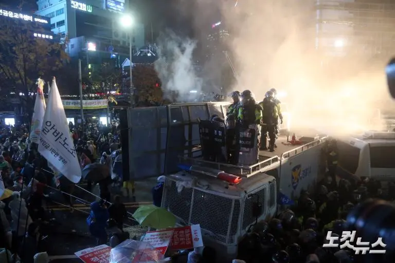 경찰은 다급해졌다. 예상하지 못한 듯했다. 저녁 6시가 되기 전임에도 여기저기에서 물대포가 난사됐다. 캡사이신을 섞어서 뿌리기 시작했다. 교보문고 앞에는 소화기도 등장했다. 경찰은 통제력을 잃은 듯 보였다.