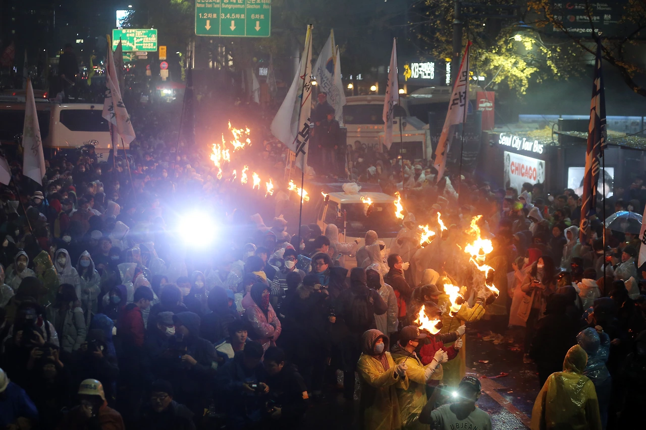 시위대는 분노하기 시작했다. 난사되는 캡사이신 물대포와 소화기에... 일부 시위대는 차벽을 향해 깨진 보도블록을 던졌다. 어디서 구해왔는지 벽돌도 날아다녔다. 에프킬라도 등장했다. 밤이 되자 횃불도 등장했다. 상황은 점점 걷잡을 수 없이 커지고 있었다. '이러다 정말 누구 하나 죽겠다'는 두려움마저 들었다.