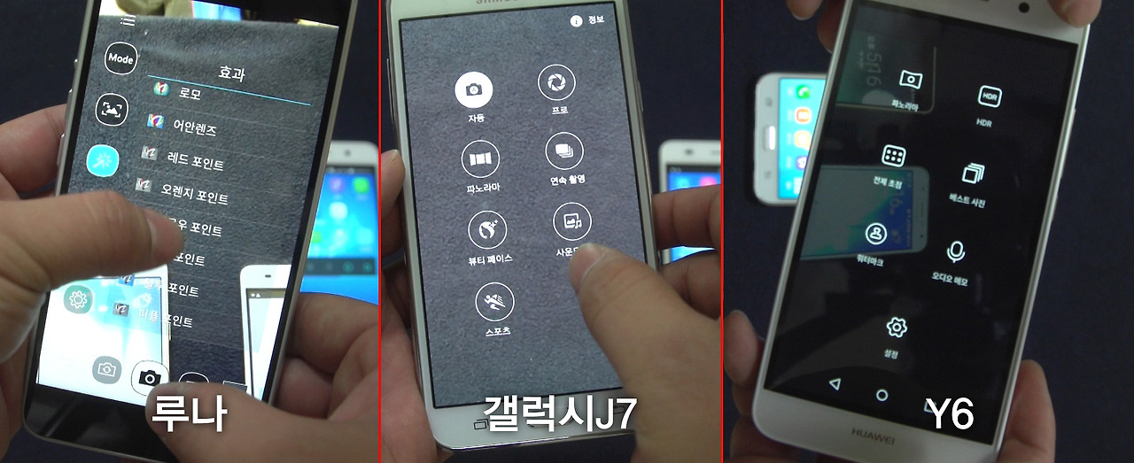 이런 기준으로 살펴보면, 루나는 다양한 기능이 있고 카메라 촬영버튼을 눌렀을 때 빠르게 찍습니다. 갤럭시J7와 화웨이 모두 촬영 속도는 만족할 만한 수준이었습니다.