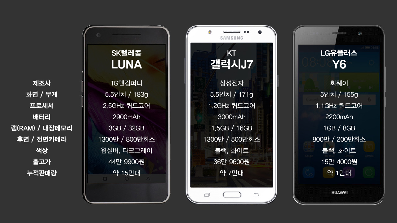 SK텔레콤 루나, KT 갤럭시J7, LG유플러스 Y6!