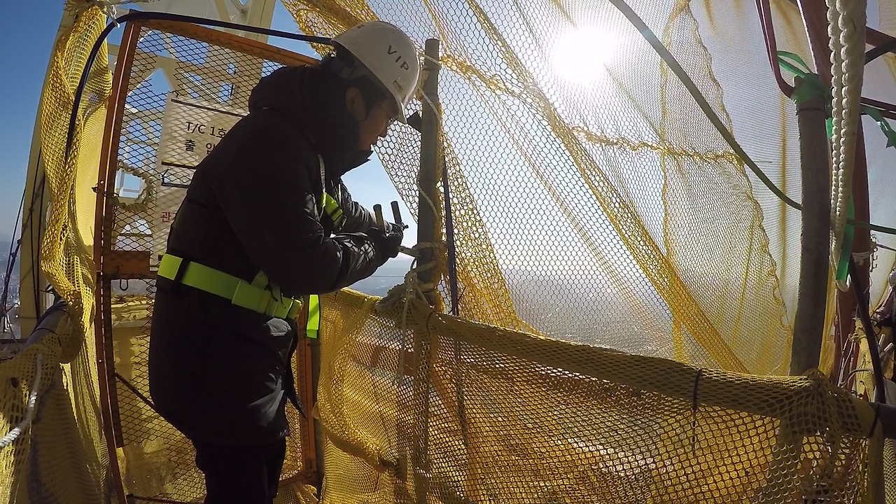 최 과장과 함께 도착한 곳은 124층. 올라오는 동안 간이 엘레베이터를 4번 갈아타고 왔다. 철제로 된 간이 이동지지대를 거쳤고, 엘레베이터는 그야말로 밖이 다 보이는 구조였다. 올라가는 내내 '격렬하게 올라가고 싶지 않다'는 생각만이 가득했다.