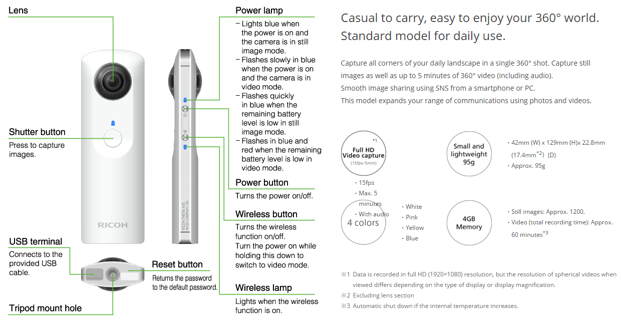 리코 세타S는 비교적 저렴한 보급형 360도 카메라다. 풀HD급 화질을 제공하지만, 편집과 변환을 거치면서 업로드된 화질은 다소 실망스러울 수 있다. 화질에 대한 아쉬움이 남는다면 전문가용으로 널리 알려진 고프로360도 카메라를 추천한다.